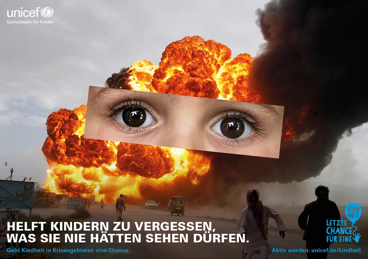 Kampagne als Spendenaufruf für Kinder in Krisengebieten.